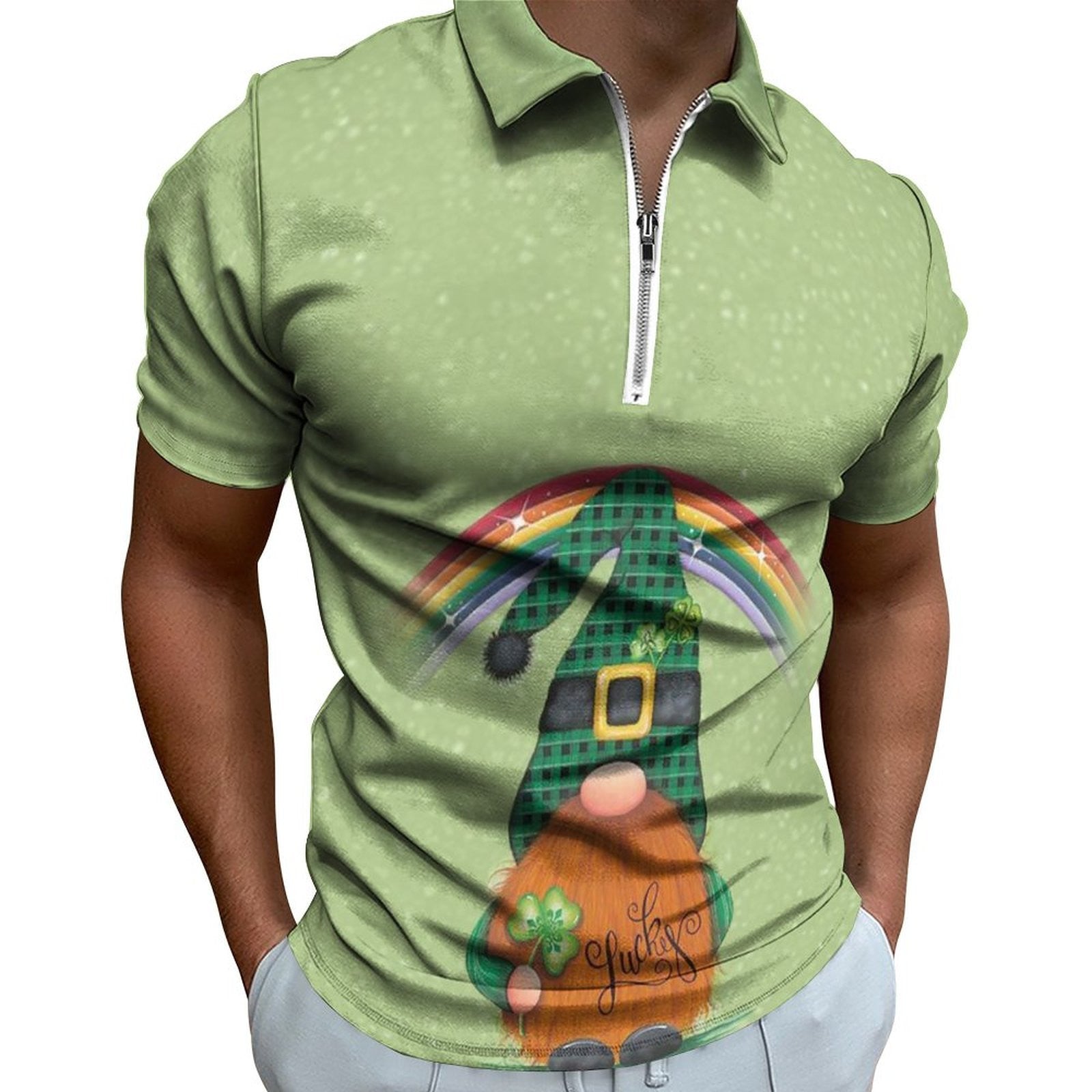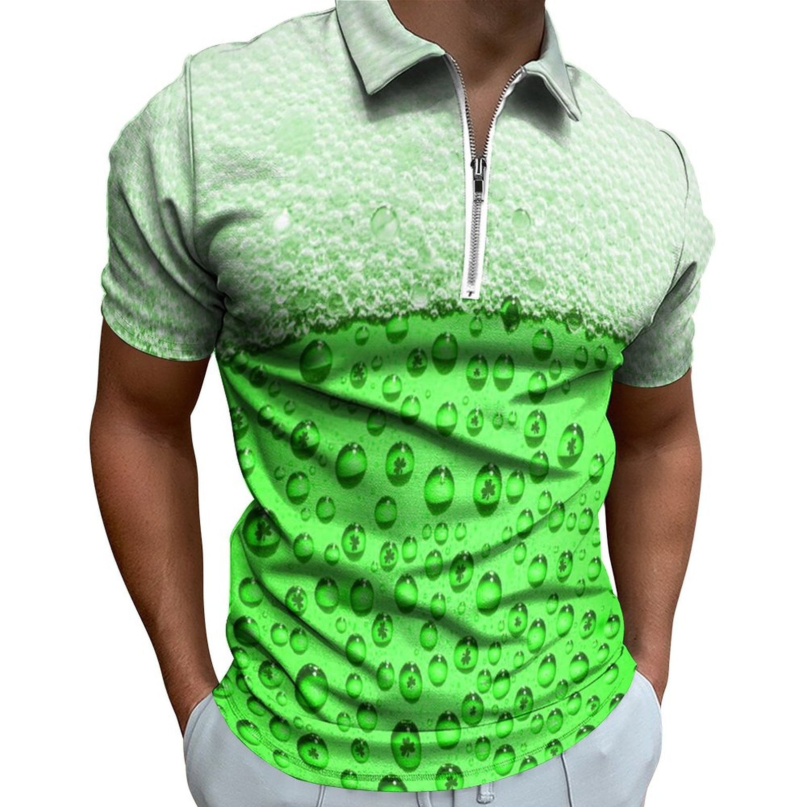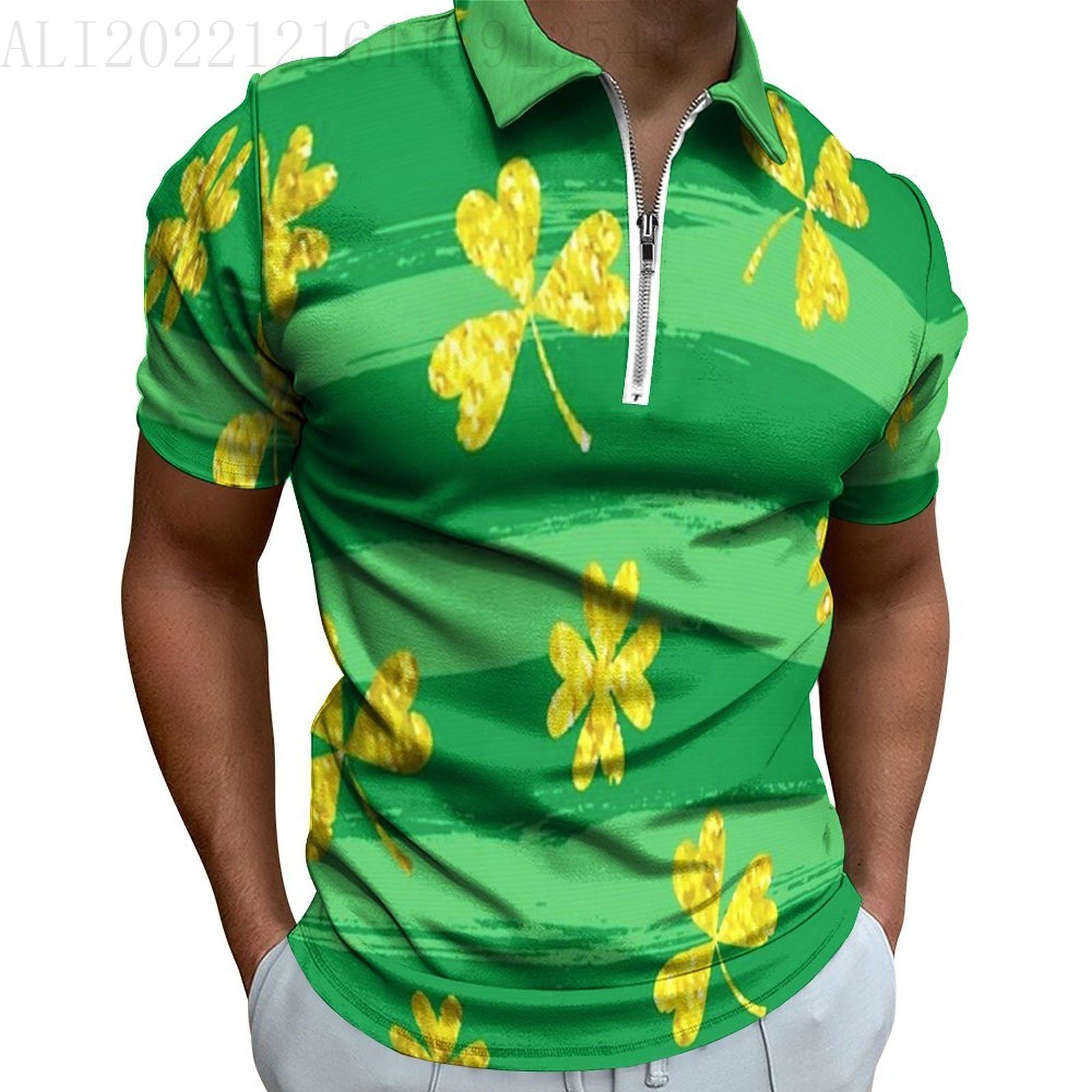 • Digital 3D Print Holiday Beach Lapel Zipper Short Sleeve Polo Shirt T-shirt