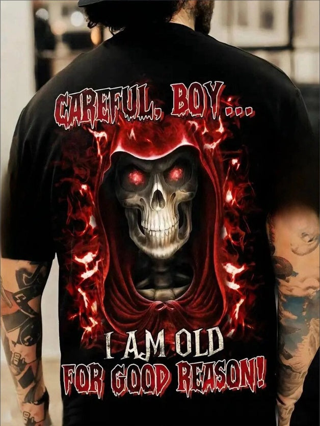 • Plus Size Men's 3D Skull Graphic Print T-Shirt - Casual Short Sleeve Tees For Summer, Vibrant Y2K Inspired Design, Breathable Fabric, Relaxed Fit - Men's Clothing