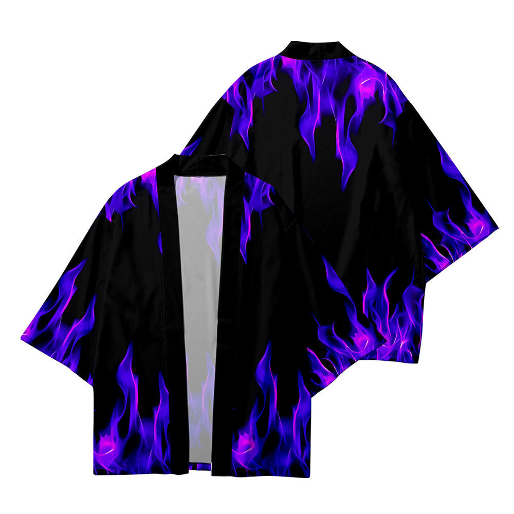 Summer Haori Kimono Stitching Print Three-quarter Shirt