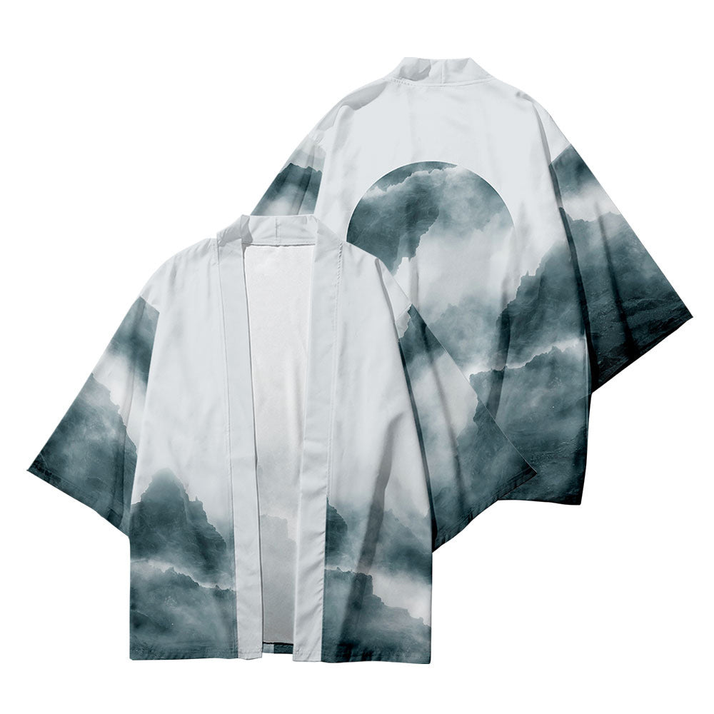 • Summer Haori Kimono Stitching Print Three-quarter Shirt