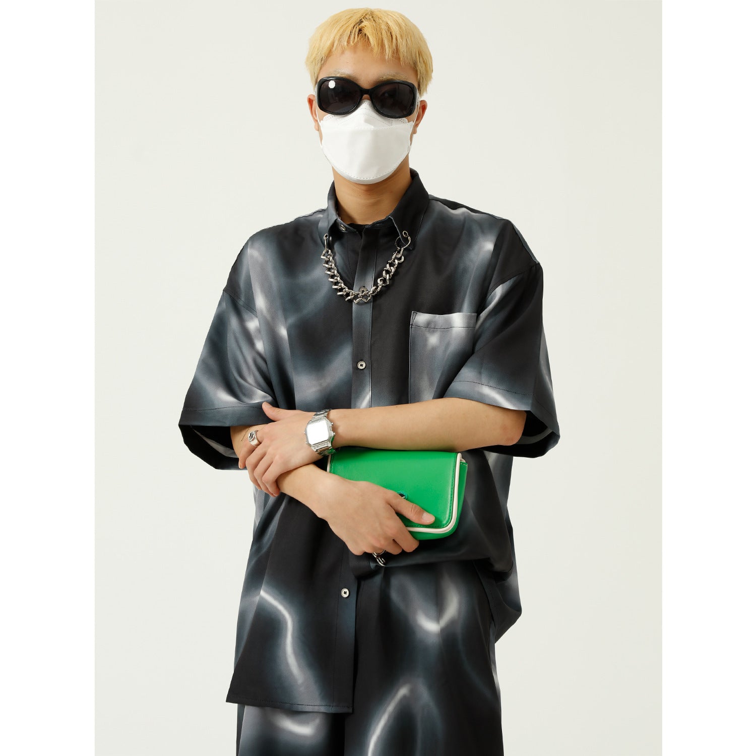 Color: black shirt, black trousers