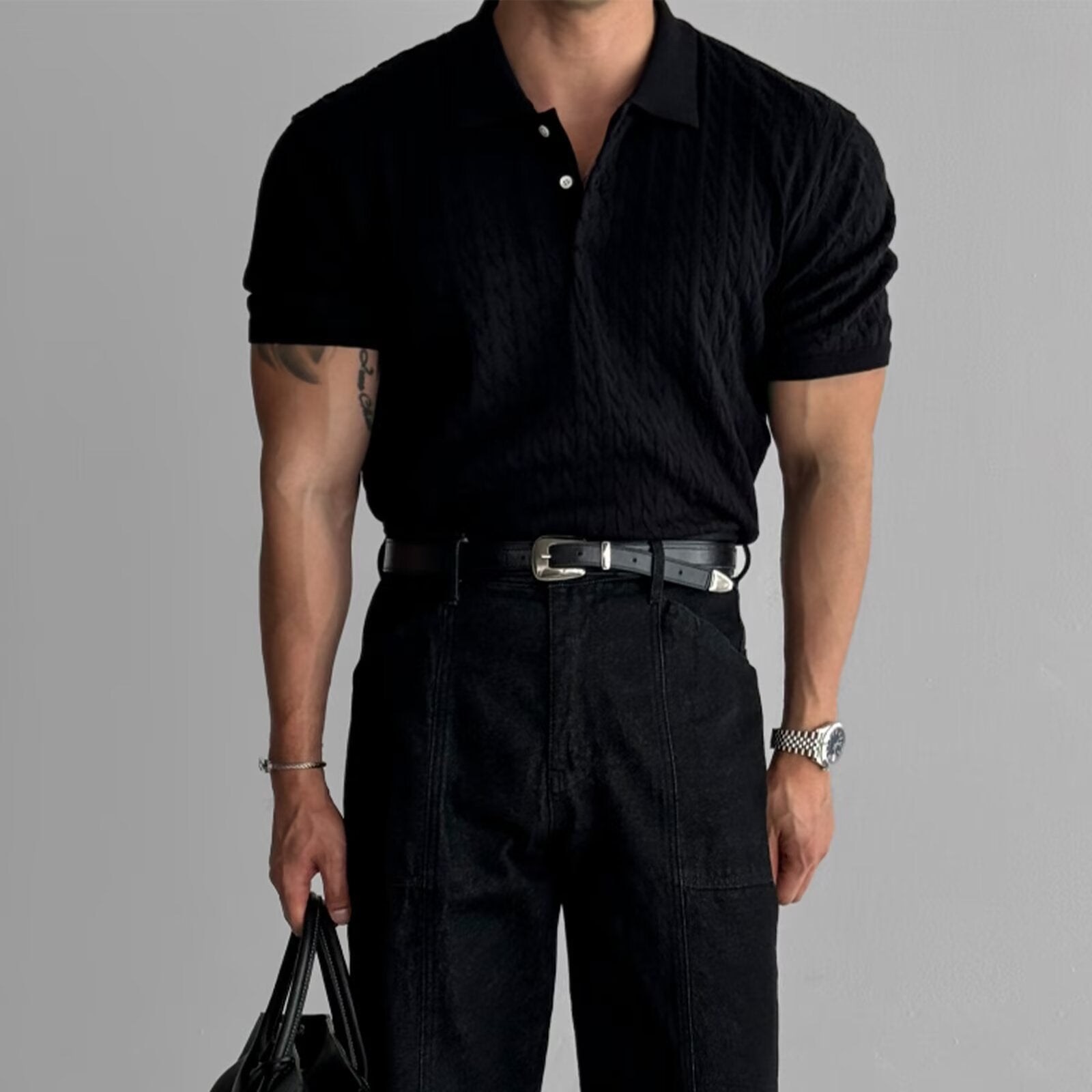 American Retro Hemp Pattern Lapel Men's T-shirt