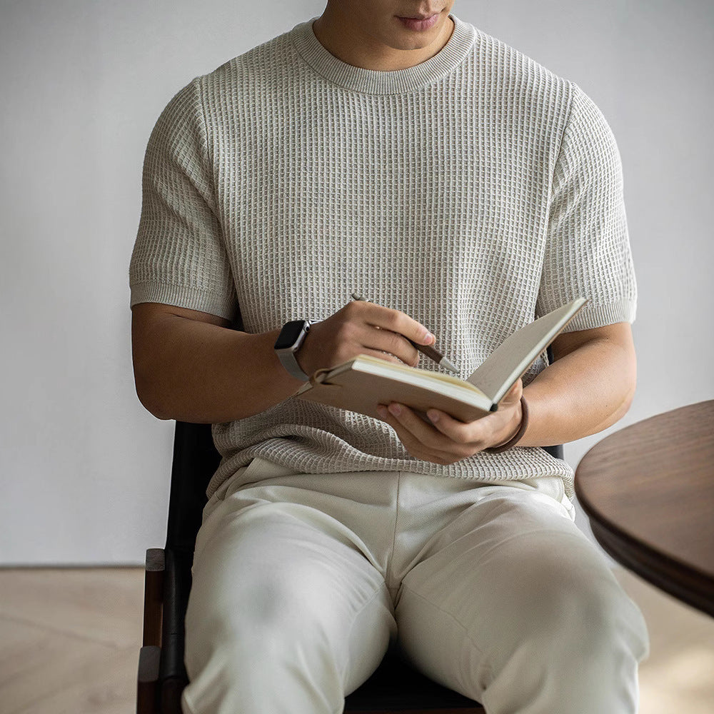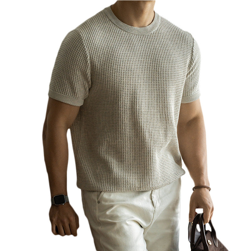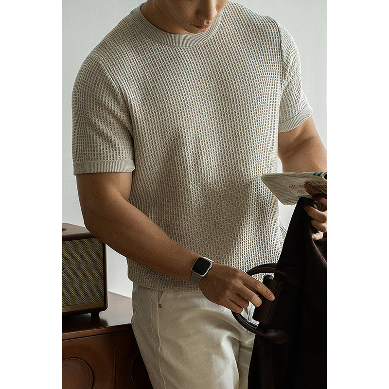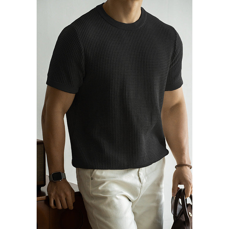 American Retro Waffle Drape Round Neck Short Sleeve T-shirt