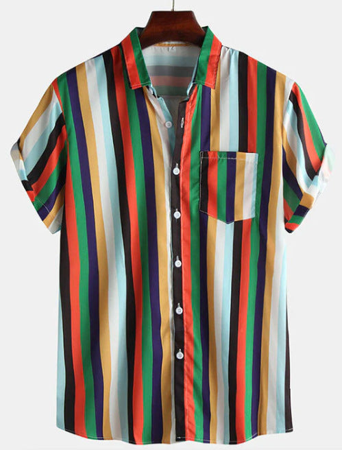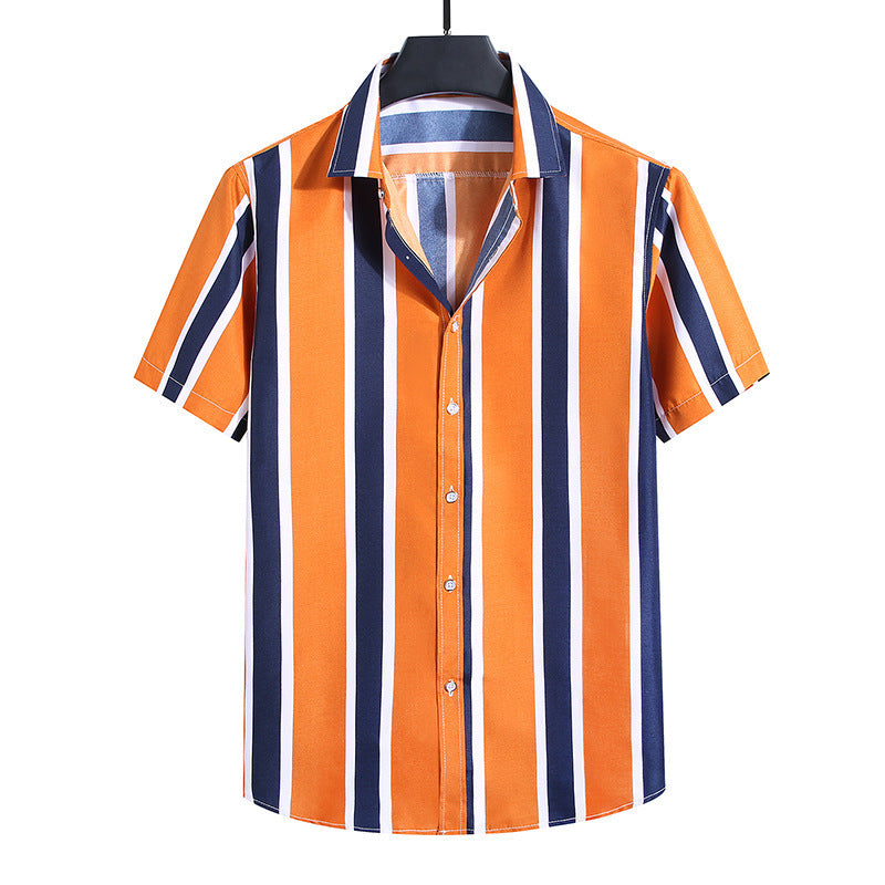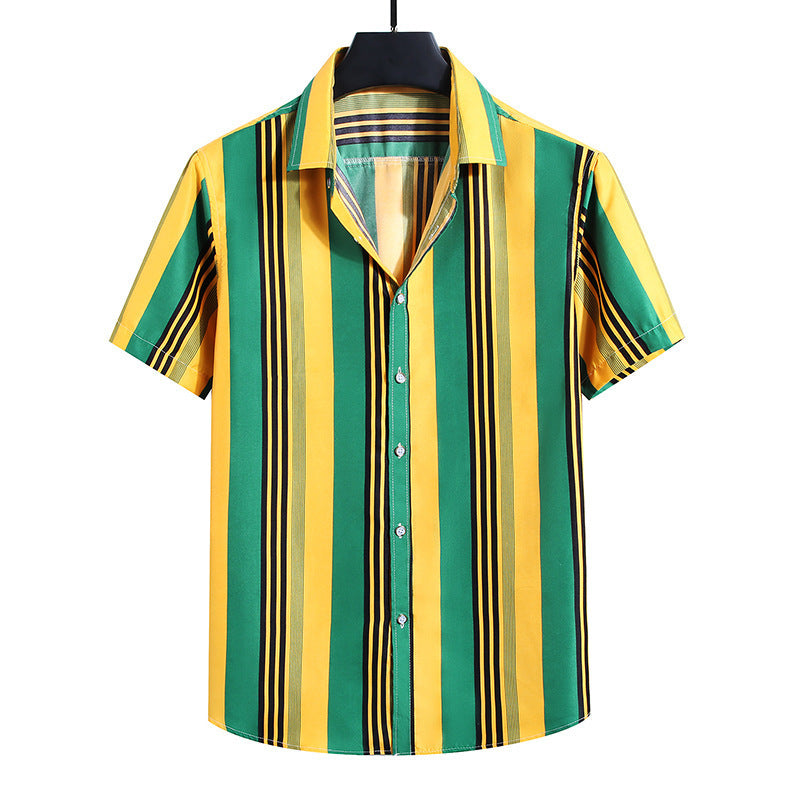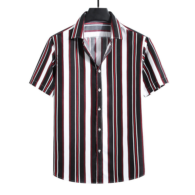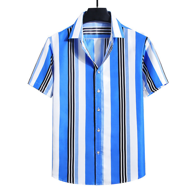 Men's Fashion Loose Striped Short Sleeve Shirt Top