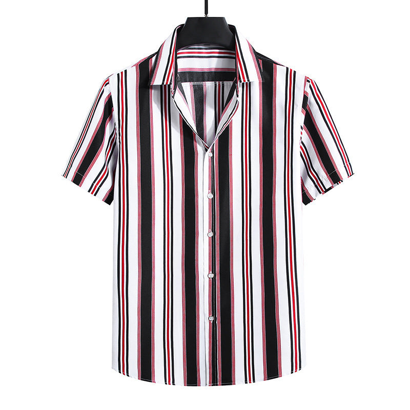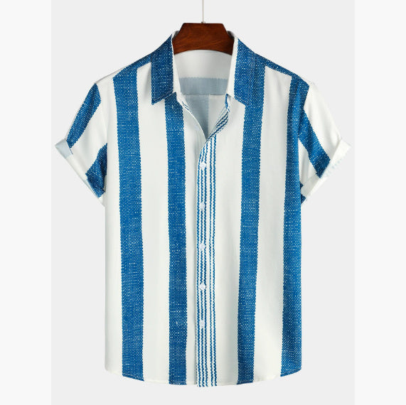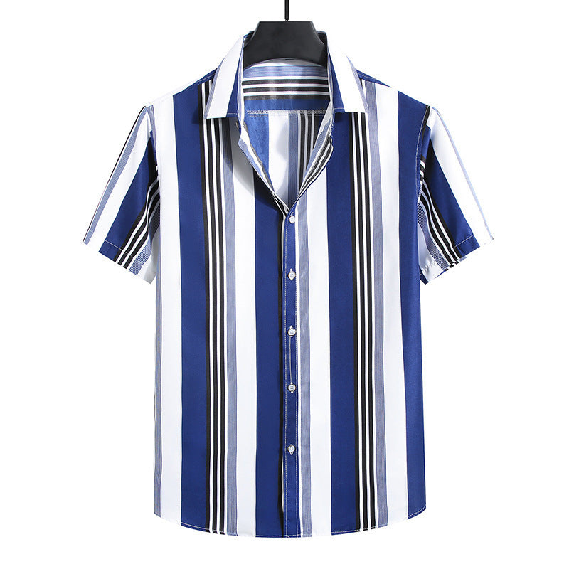 • Men's Fashion Loose Striped Short Sleeve Shirt Top
