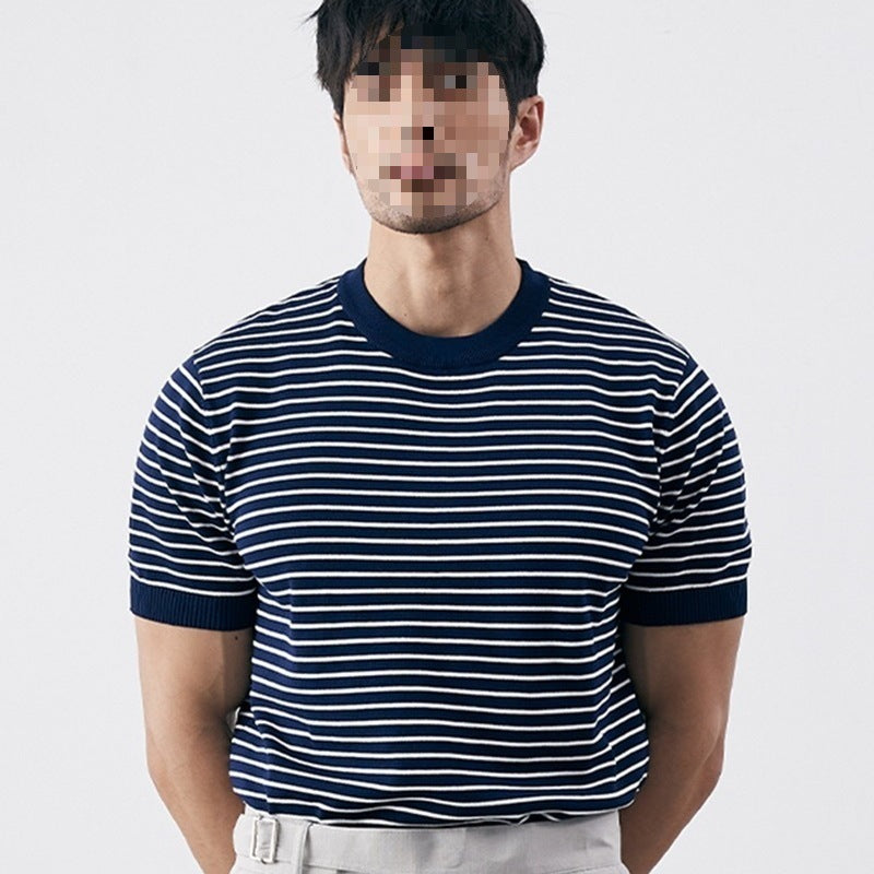 • Men's High-grade Casual Striped Round Neck Knitted T-shirt