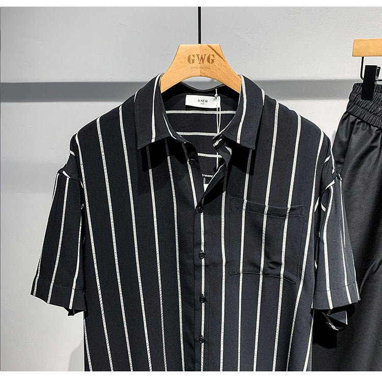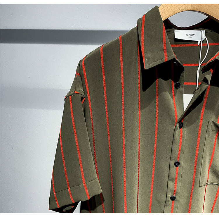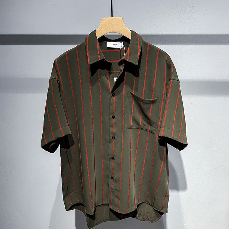 • Men's Loose Comfortable Striped Short-sleeved Shirt